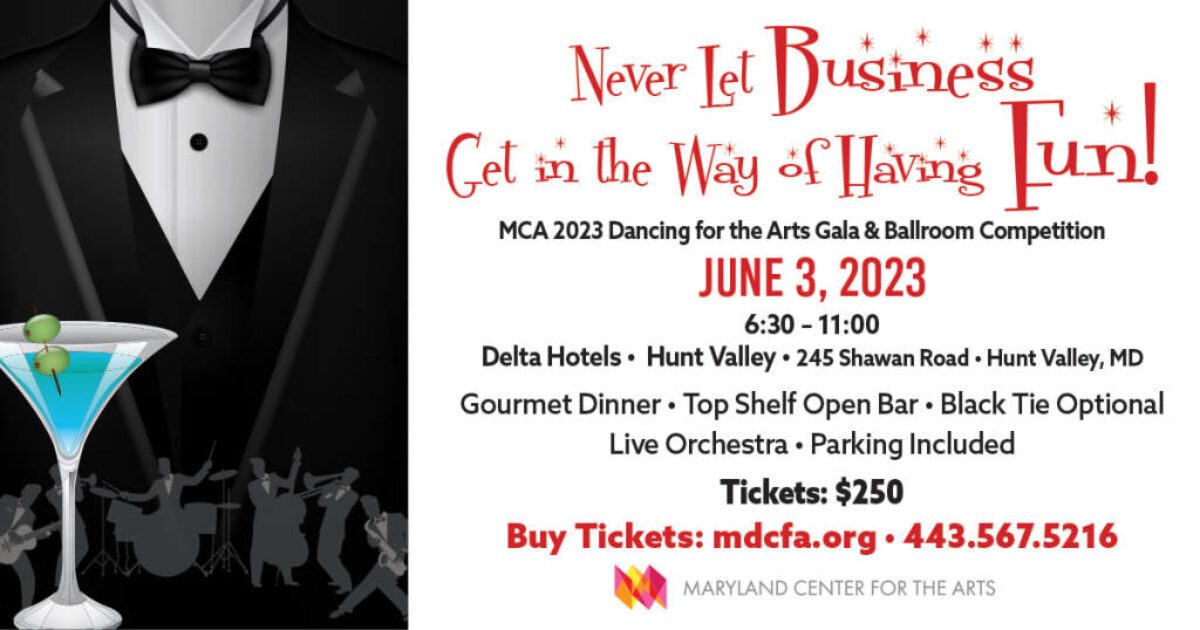 Support the arts and enjoy live entertainment at Maryland Center for the Arts largest annual fundraiser, the Dancing For The Arts Gala and Ballroom Competition on June 3! Tickets include gourmet dinner, a top shelf open bar and more! Most importantly, the event will feature ten celebrity dancers and a live orchestra! Tickets on sale now! Visit Maryland Center for the Arts website for more information!