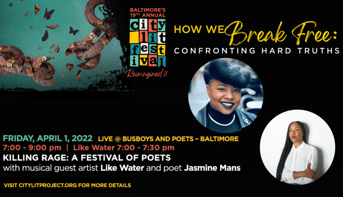 In a nod to feminist bell hooks and the beginning of April as National Poetry Month, CityLit Festival Reimagined II ends with Killing Rage: A Festival of Poets and we’re bringing you some of the best this region and beyond has to offer with featured guest poet Jasmine Mans, whose latest collection Black Girl, Call Home is a love letter to Black daughters. The set opens with indie vocal artist, and a treasured member of the CityLit Fam, Like Water who sets the tone and gifts us with the beauty of her jeweled voice. For the first time, CityLit gets to publicly celebrate the 2019 Harriss Poetry Prize winner, Burgi Zenhaeusern, whose prize-winning work Behind Normalcy (seems a fitting title for today’s times) is an opportunity to explore the tense and probing questions we hide behind and hide from in polite society