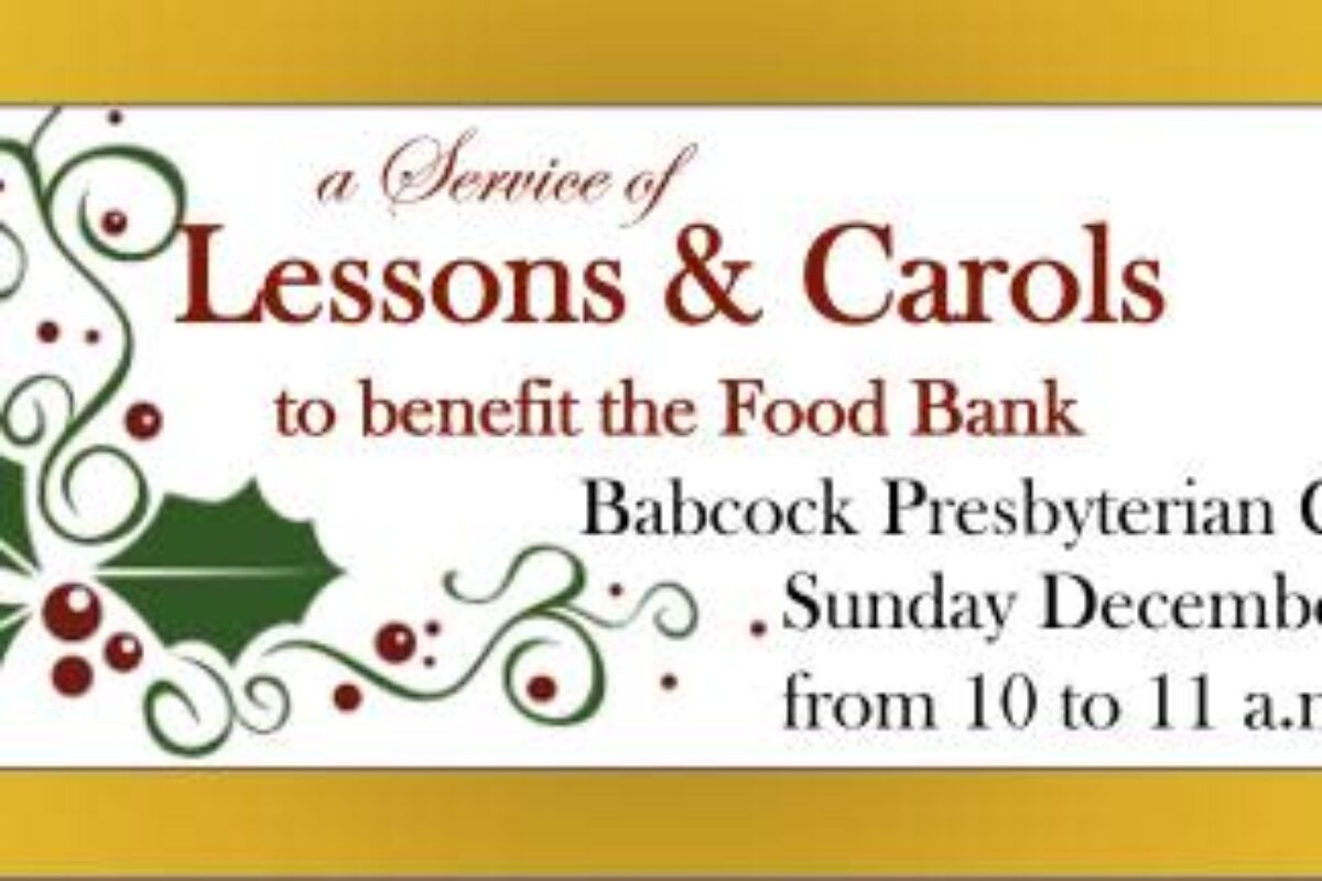 A traditional service of Lessons and Carols to benefit the Food Bank at Babcock Presbyterian Church featuring Pianist Greg Small and Baritone Soloist Steve Scheinberg.