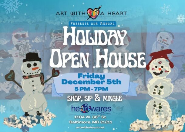 Proceeds from all items sold at the Holiday Open House will go directly to the student artists and support HeARTworks. Adding to the merriment, the event will feature an interactive art activity, a DJ, light refreshments and holiday-themed drinks.
