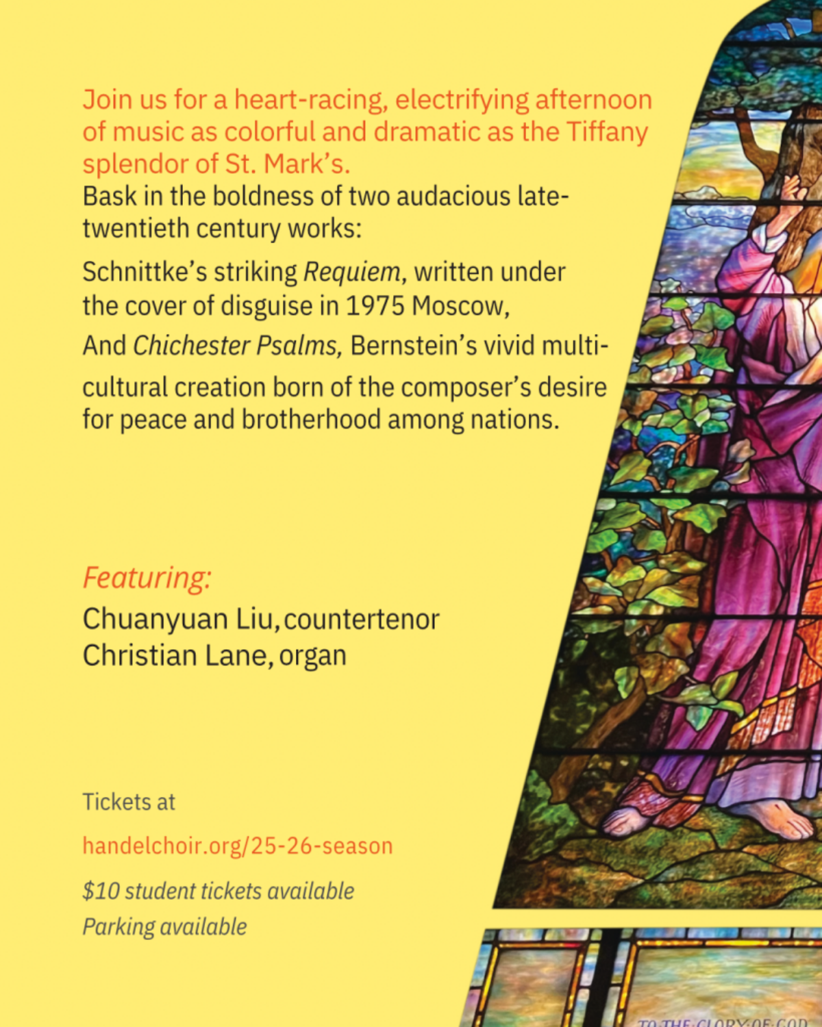 Join us for a heart-racing, electrifying afternoon of music as colorful and dramatic as the Tiffany splendor of St. Mark’s.