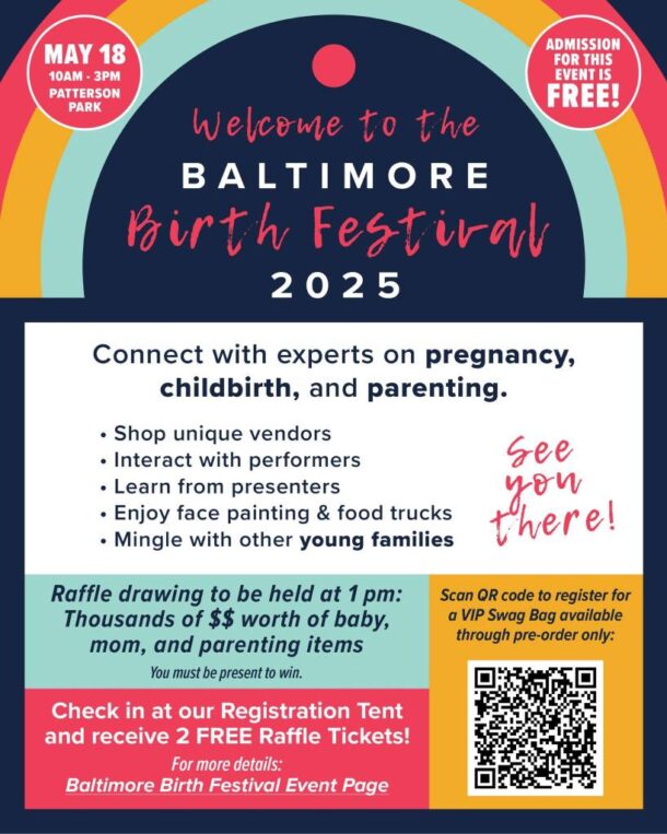 Join our Festival community of vendors, care providers, local businesses, birth workers and more for a day of family fun. If you’re looking for more information on great resources for pregnancy, postpartum and parenting in the Baltimore area, this Festival is for you. There will be live music and entertainment, as well as educational presentations. Admission for this event is FREE!
