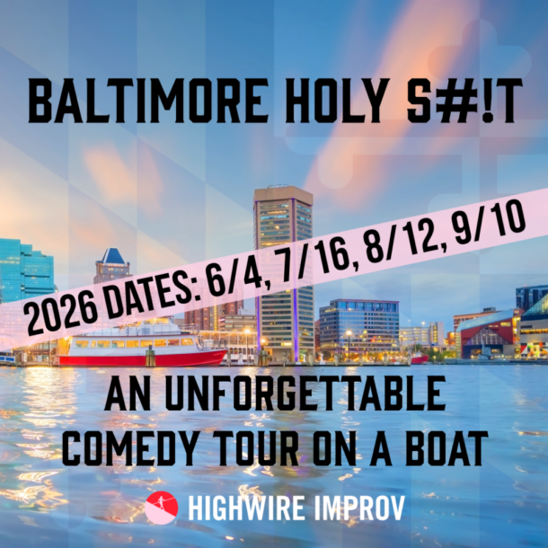 Join us for a hilarious voyage around the inner harbor where we’ll explore Baltimore’s history, landmarks, most ridiculous people, and get to know each other through the lens of two very weird, very funny Highwire Improv hosts.