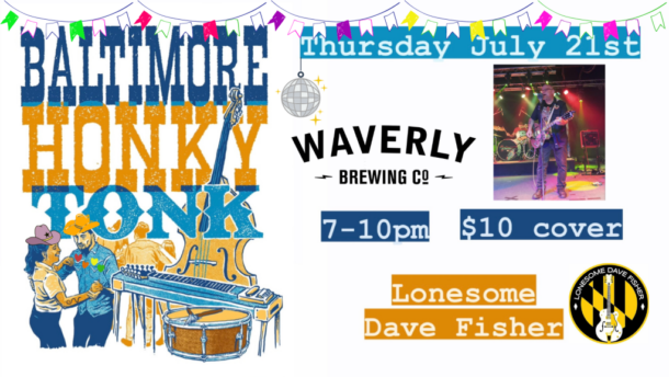 The Baltimore Honky Tonk is comin’ to ya again this month on Thursday July 21st! Come get your two-stepping on at Waverly Brewing Company with more live music, great vibes and tons of dancing. Lonesome Dave Fisher and his band will be playing some fabulous dance music all night.