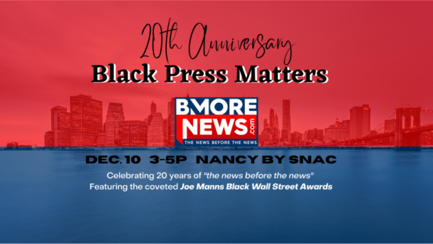 Black Press Matters, a BMORENews.com 20th anniversary event, will feature, of course, the Joe Manns Black Wall Street Awards. Honorees include some of the best and brightest in the MD-DC region, including Diane Bell-McKoy, Tim Regan, Gina S. Duncan, Dr. Madeline Lewis, Lauren Lassiter, Stefanie Flood, Dr. Michael Zollicoffer, M.D., the Druid Hill Park Partnership (Catalina Byrd, Dale Terrill, and Zanes Cypress III), Jayne Miller, Marsha Jews, Nicole Kirby, Zy Richardson & Richard Burton.