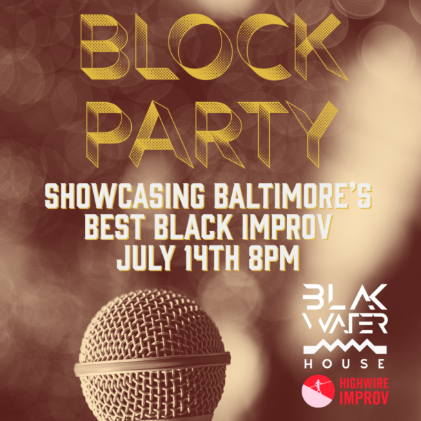 An improv comedy show presented by Highwire Improv at BlakWater House, Block Party is two hours of the funniest improv in Baltimore. A showcase of Baltimore’s best Black improv comedians, this show will feature short-form comedy games, long-form sitcom-style shows, interviews and more. Food and drinks will be available for purchase.