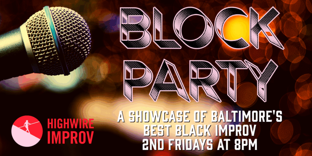Presented by Highwire Improv, Block Party is 90 minutes of the funniest improv in Baltimore and a true showcase of Baltimore’s best Black improv comedians!