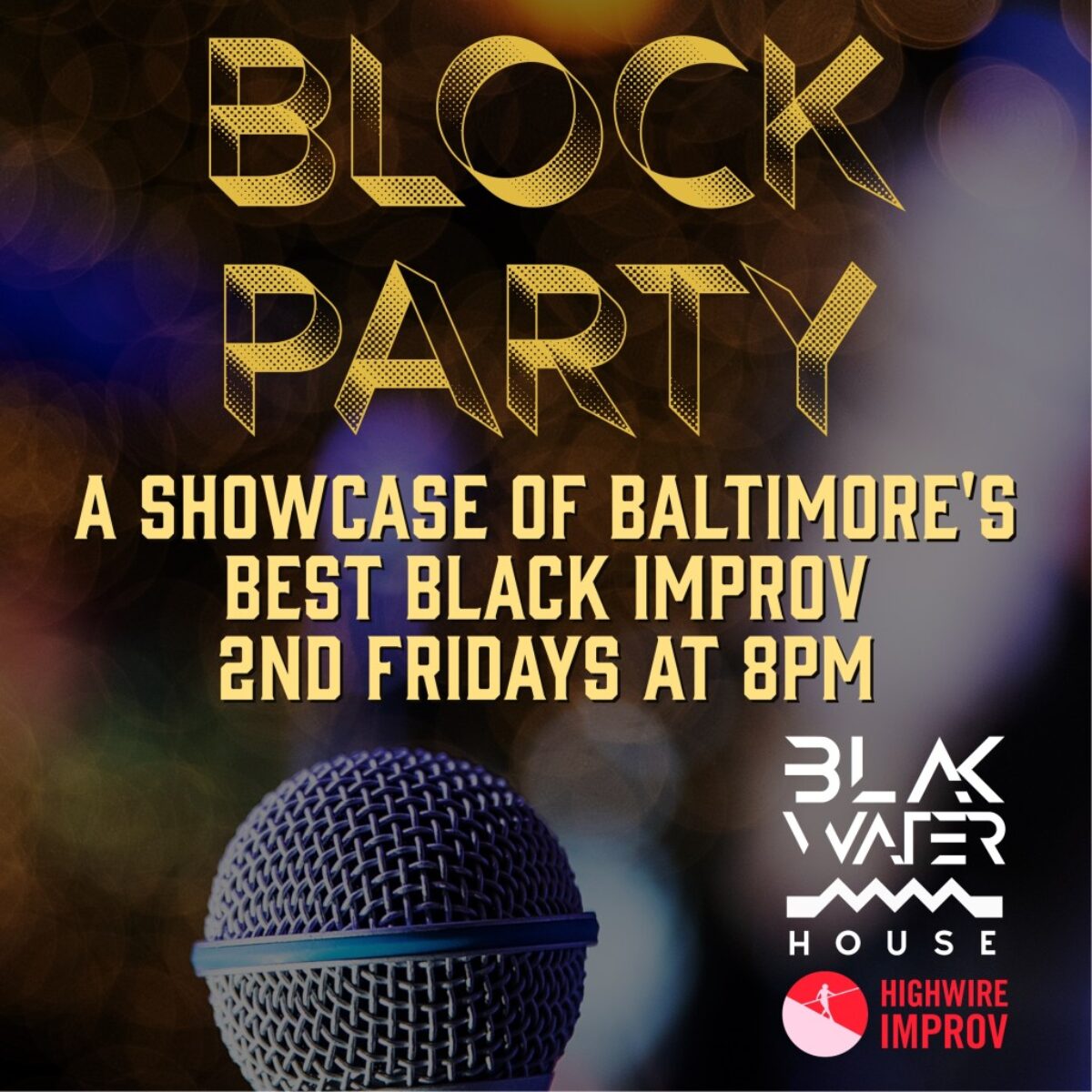 Presented by Highwire Improv at BlakWater House, Block Party is 90 minutes of the funniest improv in Baltimore and a true showcase of Baltimore’s best Black improv comedians!