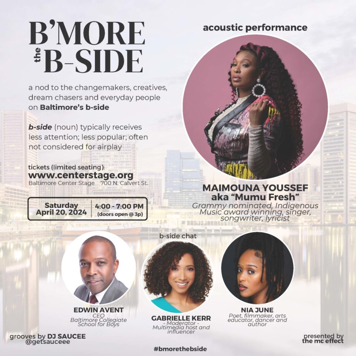 B’more the B-side recognizes the changemakers, creatives, dream chasers and everyday people on Baltimore’s b-side. Through conversation and an intimate acoustic performance, this experience uplifts the stories of Baltimore and the people who call it home.