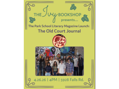 This event will take place at The Ivy Bookshop, located at 5928 Falls Road on September 23, at 1 pm. It is free and open to the public.