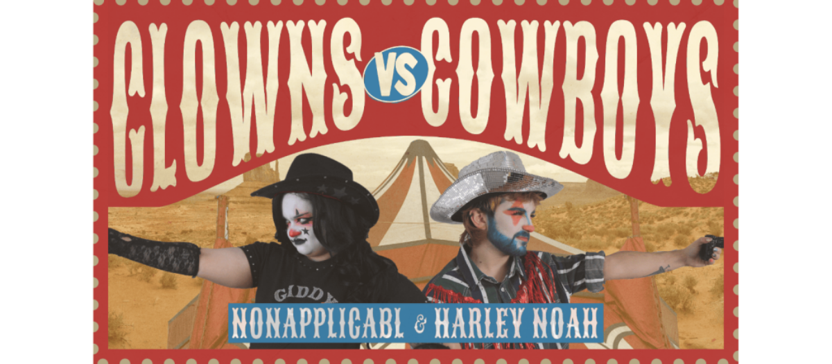 HOWDY, JESTERS! nonapplicabl (@nonapplicabl) and Harley Noah (@iharleynoah) would like to invite you to a CLOWNS VS COWBOYS Birthday Extravaganza! Join us as Baltimore’s Clown Boy Princess and Disco Cowboy host a show filled with, well… clowns and cowboys! Get dressed up in your silliest outfit or your western attire, and watch these two sides duke it out— or, be a fence sitter and combine the two aesthetics! Featuring drag, drinks, and a costume contest. Follow @queerclownhouse for similar upcoming delights!