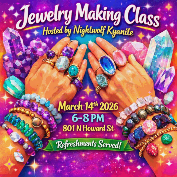 Come join jewelry designer, Blvck Tiger Creations at 801 N Howard St on March 14, 2026 at 6 PM (Eastern Time) and unleash your creativity by designing your own unique pieces. Light refreshments will be provided. We hope to see you there! 😊