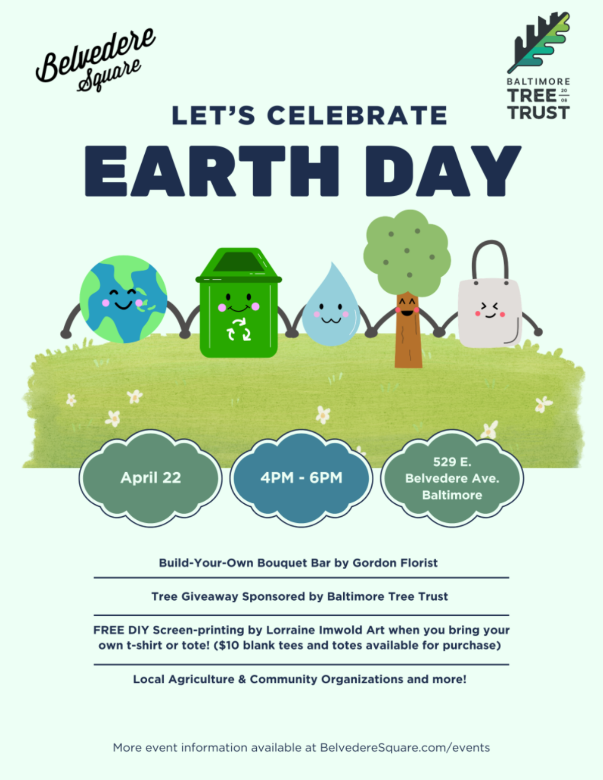 Let’s celebrate Earth Day! Join us on April 22 from 4-6 p.m. to share the love with our community who helps to give back to Baltimore and care for the Square.