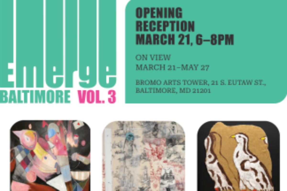BOPA’s 2024 exhibits begin with Emerge: Vol. 3, Spring Edition. Now in its third year, the Emerge Baltimore exhibition series serves as a platform for local rising artists to show their work in the historic galleries of the Bromo Seltzer Arts Tower. Emerge: Vol. 3, Spring Edition kicks off on Thursday, March 21, with a public opening reception from 6-8 p.m. to celebrate the solo shows of Xavier Hardison, BlissArmyKnife and Jennifer McBrien.