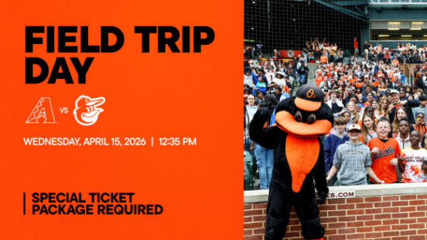 The Orioles will welcome over 5,000 students and staff from 60 area schools to the ballpark for their annual Field Trip Day. Students and staff in attendance will learn how weather, science, technology, engineering, and mathematics impact the game of baseball. Special guests will include WBAL-TV Meteorologist AVA MARIE and members of the National Weather Service. Tickets are available at Orioles.com/TicketPackages.