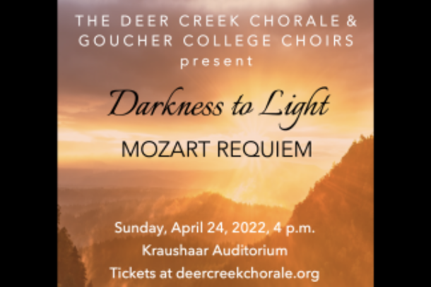 The Deer Creek Chorale and Goucher College Choirs will be performing works by Mozart, including the iconic Requiem, Joseph Martin’s The Awakening, and the premiere of Daniel McDavitt’s From Mountain to Forest to River, with special guest ensemble, the Deer Creek Youth Choir.