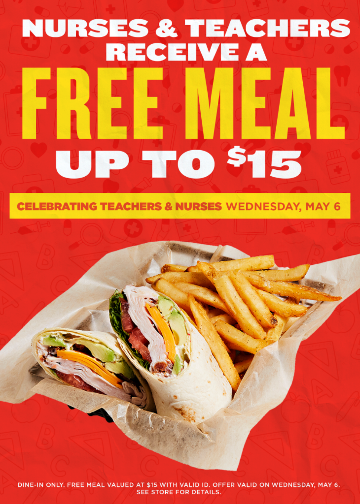To celebrate National Teacher & Nurses Week, The Greene Turtle is honoring nurses and teachers with a FREE meal on Wednesday, May 6! This offer is valid for dine-in guests only with a valid ID, up to a $15 value. It’s a small gesture to show big appreciation for those who give so much every day. 🎉