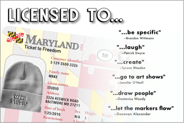 Make Studio is a 501(c)3 community-based arts organization located in Baltimore, MD. Founded in 2010 with the aim to put art and abilities to work, Make Studio’s mission is to empower artists with disabilities to grow as professionals with visibility and voice in their communities. We create opportunities for everyone to connect through art.