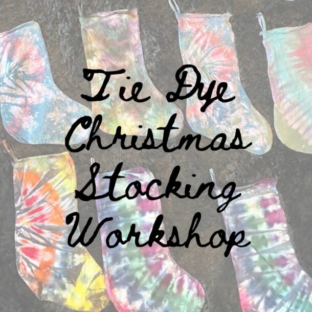 During this workshop, I will lead you through the basics of tying to make your new favorite holiday stocking! Then we will head to the dye station where you’ll get to use professional dyes to create a one of a kind festive piece of art. You’ll take home your tie dye stocking to wash, and you’ll have it for years to come!