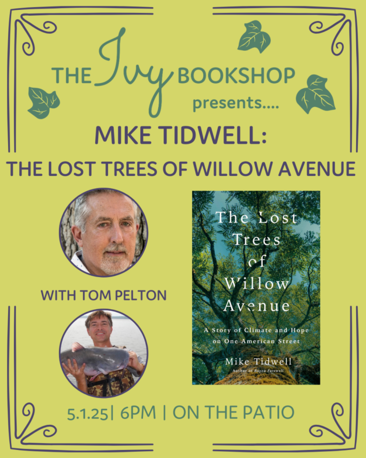 The Ivy invites you to a meaningful discussion of climate change in the local and regional context. Mike Tidwell, author of The Lost Trees of Willow Avenue, tells the story of one year of climate impacts on his own block in Takoma Park, Maryland, from the fate of the magnificent oaks to the hopes, health, and futures of his neighbors. This is the first book of its kind to tell the story of climate change through a hyper-local lens, offering a harrowing and hopeful proxy for every street in America and every place on Earth.