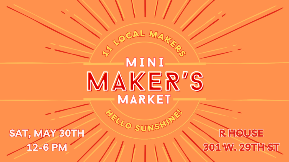 Join us for the Mini Maker’s Market Hello Sunshine, on Saturday, May 30 from 126 PM at R House for an afternoon of shopping, delicious bites and handmade vibes!