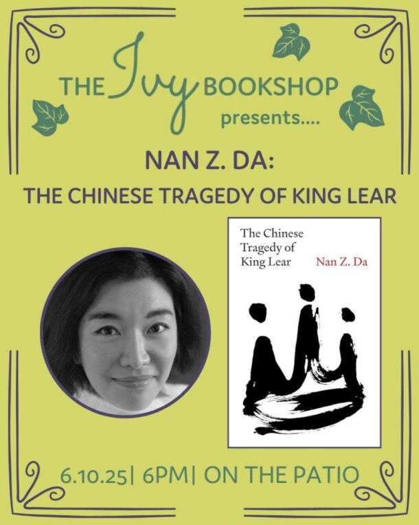 Join us on the Ivy patio to hear more from Dr. Da about her exciting new book, which blends literary analysis and personal history to investigate parallels for Shakespeare’s King Lear in twentieth-century Chinese history.