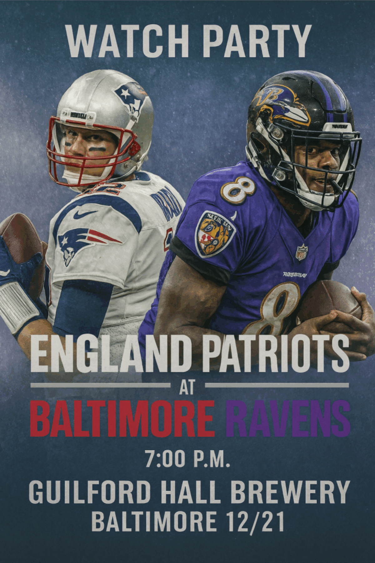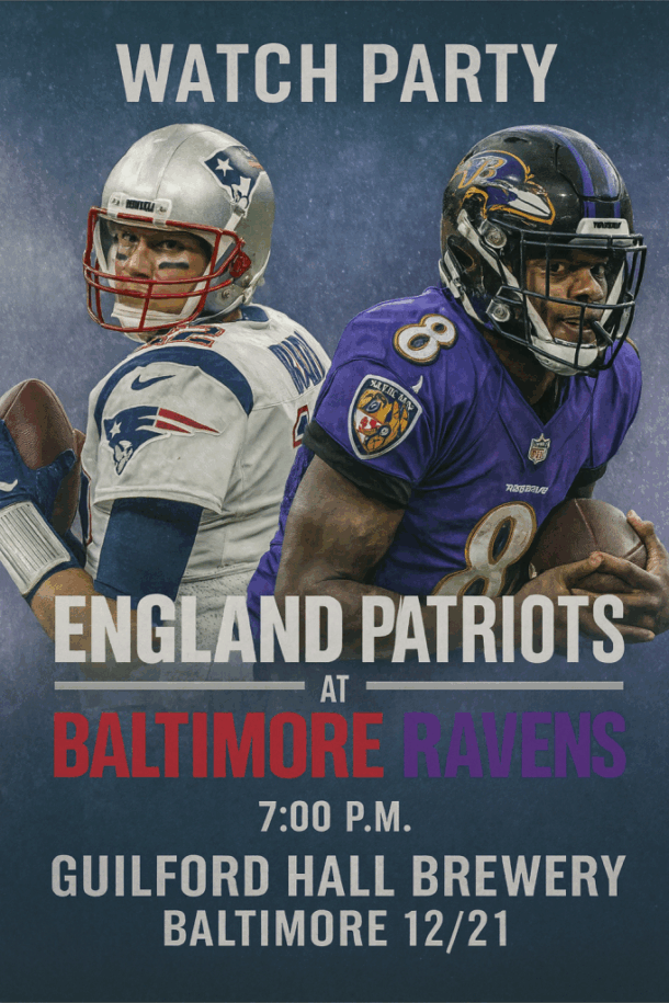 It’s game day! Watch Sunday night football with the News England Patriots at Baltimore Ravens starting at 7 p.m.