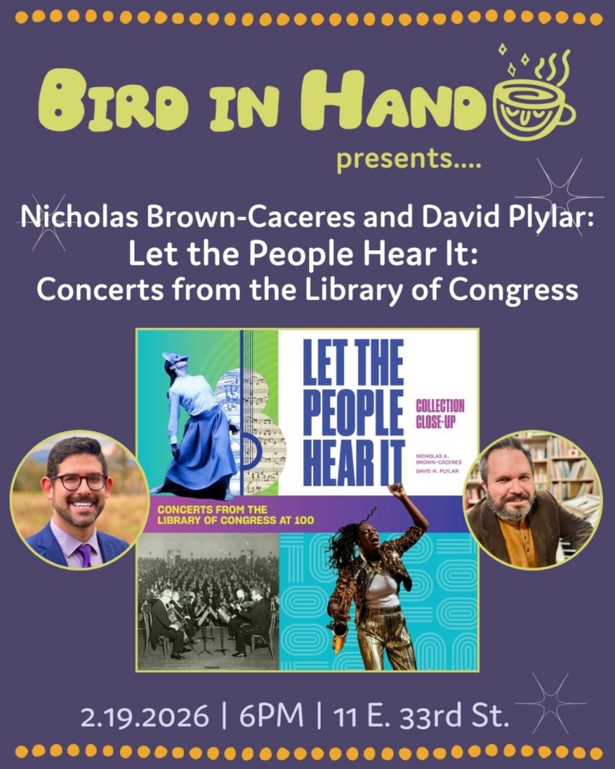 Join us for a conversation (and listening party!) with the authors of the new book LET THE PEOPLE HEAR IT, which explores the history of the concert series and its impact on music in the United States. Alongside some of the most important composers and performers of the past 100 years, from Arnold Schoenberg and the Gershwin brothers to Esperanza Spalding and Stevie Wonder, the book includes a special feature on the Baltimore Symphony’s Orchkids program, which presented at the Library of Congress twice during Dr. Carla Hayden’s tenure.
