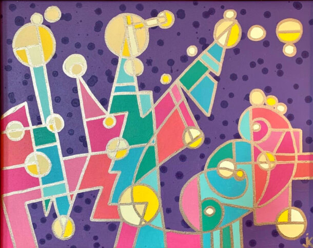 Josef Kardell’s excellent Showcase Exhibit opens November 3! Join us for a glass of bubbles, meet the artist, find out how he achieves such perfect freehand circles, chat with other art lovers and enjoy First Friday on the Avenue! Josef’s colorful abstract paintings, sometimes described as “controlled chaos,” frequently recall electronica as well as nautical themes from his childhood.