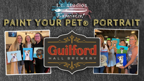 Sip & eat while you paint your very own PET PORTRAIT PAINTING at Guilford Hall Brewery in Baltimore, MD! No artistic ability or experience required. Each canvas/portrait WILL BE PRE-SKETCHED for your convenience! Pre-registration is required. Get tix BELOW (scroll down) or contact T.C. Studios at 443-248-4273