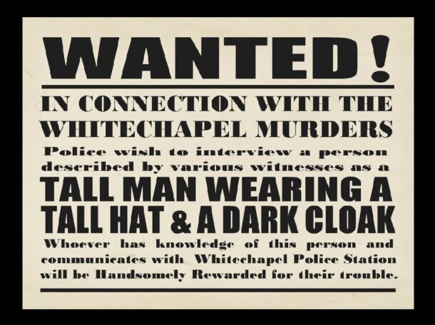 In 1888 England was gripped by an Autumn of Terror as a wave of shocking and brutal murders took place in Whitechapel, a district in London’s East End. In crowded streets, busy neighborhoods, and lodgings with thin walls, at least five women were ferociously yet seemingly silently attacked, their remains left in public spaces to be found by their neighbors. Bold headlines and gruesome illustrations covered the front pages of English newspapers, some of which received gifts and confessional letters from a culprit who was never caught or officially named.