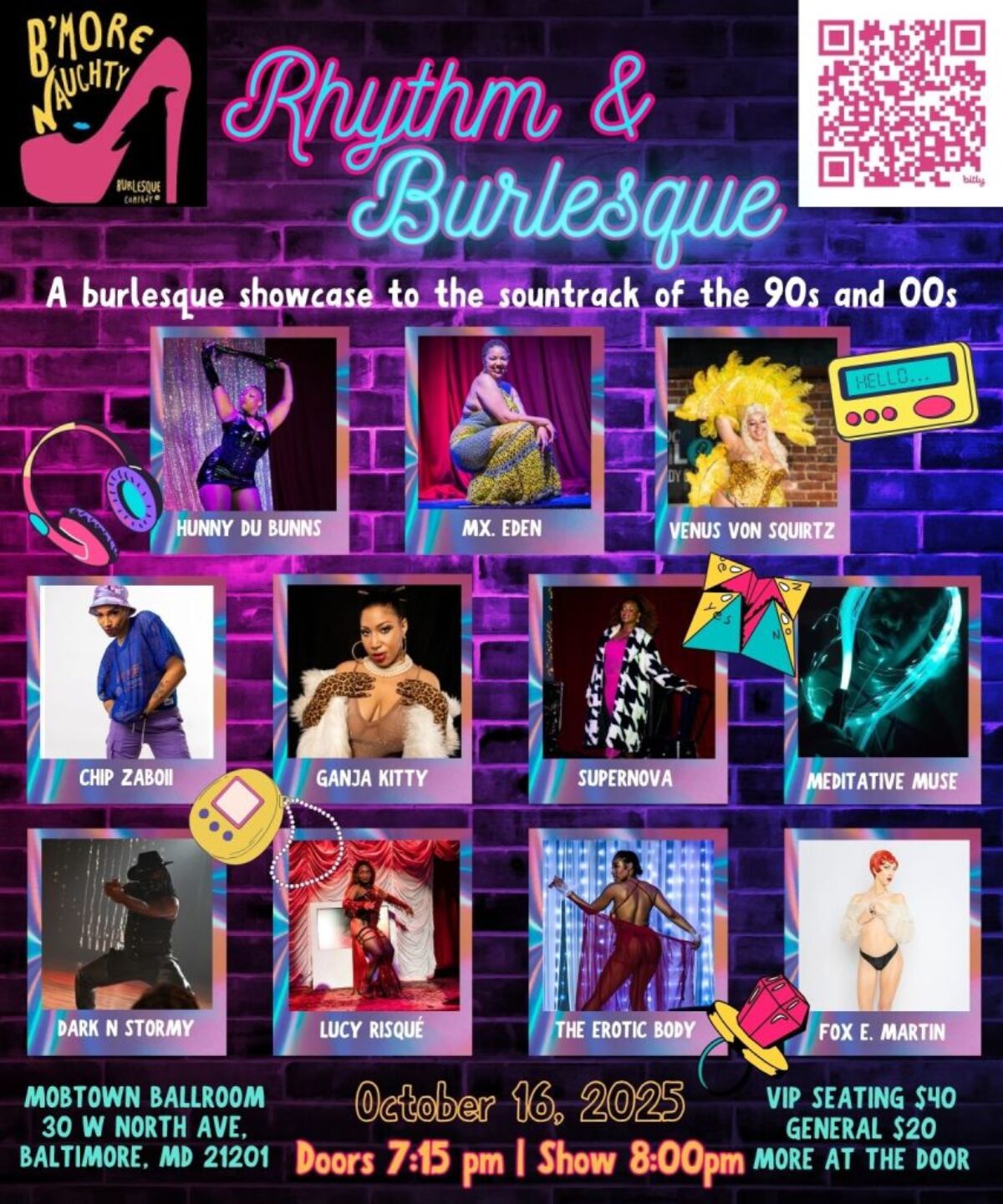 This October, B’More Naughty is slow jammin’, body rollin’, and serving unapologetic Black queer brilliance with Rhythm & Burlesque: A Celebration for Baltimore Black Pride! 🎶✨