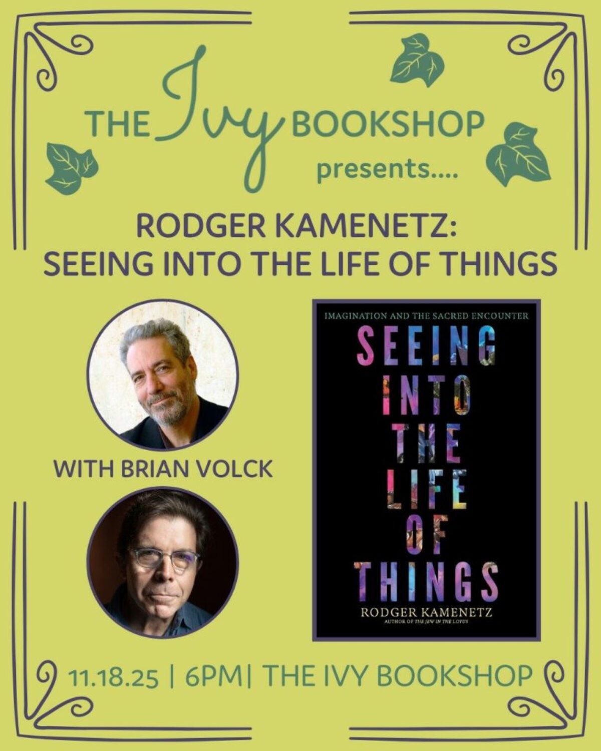Kamenetz, who grew up in Baltimore and graduated from the Writing Seminars at Johns Hopkins University, returns home to speak about the book and lead us through one of its foundational practices. This event will be hosted inside the shop, which is the former sanctuary of the Divine Life Church, a spiritual community and meditation center. We are fortunate that Brian Volck, who has reviewed Kamenetz’s work in the past, will join Kamenetz for the program.