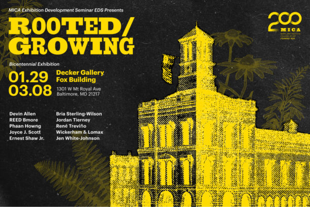 This year’s exhibition, Rooted / Growing is curated by the students of the Exhibition Development Seminar program in conjunction with their professor Joo Yun Lee, celebrating two centuries of creativity, the exhibition honors the intertwined histories of MICA and the city of Baltimore, whose relationship is defined by resilience and mutual transformation. Rooted/Growing aims to highlight the memories, stories, and histories of all peoples that have contributed to the shared experience of the college and all of those to come.