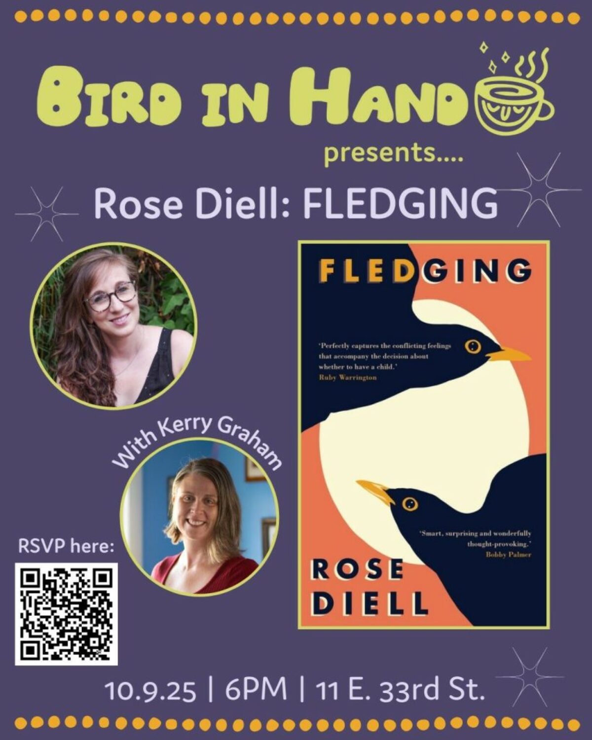 Rose Diell’s Fledging is a beautiful, allegorical novel that considers the decision whether to have a child. It’s about Lia, who lays an egg. Her partner on tour on the other side of the world and her mother diagnosed with a terminal illness, Lia finds herself torn, unsure whether she’s ready to give up on her songwriting dreams; but time is running out, and she must make one of the biggest decisions of her life.