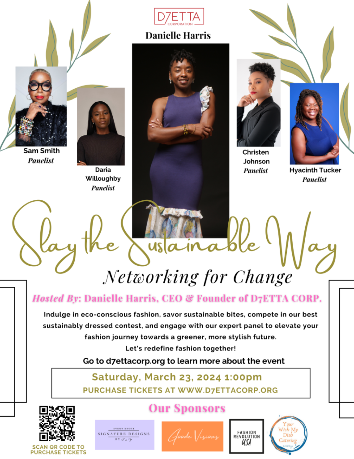 Connect with like-minded individuals and gain a fresh perspective on the fashion industry. Discover why being a conscious consumer is the key to shaping a better society. By purchasing a ticket you’re not just gaining access to incredible experience- You’re supporting D7ETTA Corporation’s initiative to rasie funds for our prom charity & community events. We will also be collecting formal garment donations to go towards D7ETTA Corp. Prom Charity event to support a Baltimore City high school students prom night. Â