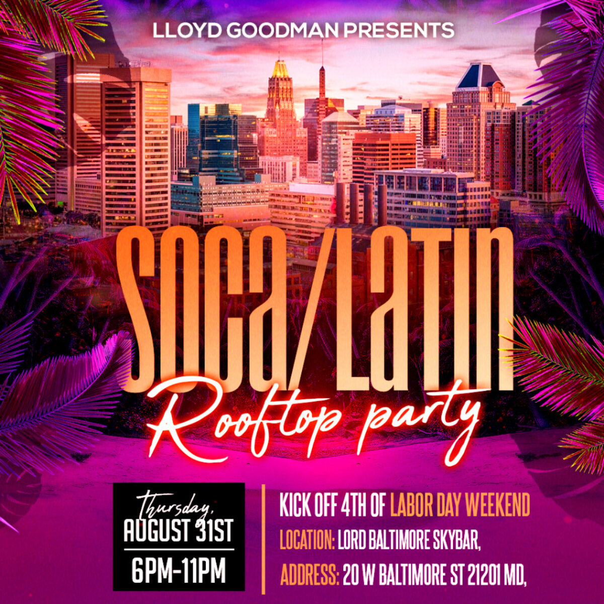 Don’t miss out on this incredible event. Secure your tickets early to guarantee your spot at the Soca/Latin Rooftop Party on August 31st. Get ready to dance, connect and create memories that will last a lifetime.