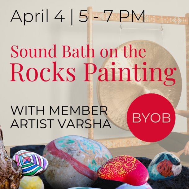 Join Member Artist Varsha for a calm and cool class combining the relaxing art of rock painting with the meditative restoration of sound bath! All art supplies are included. BYOB as well as a yoga mat and/or blanket/sweater to facilitate your comfort during the meditation!