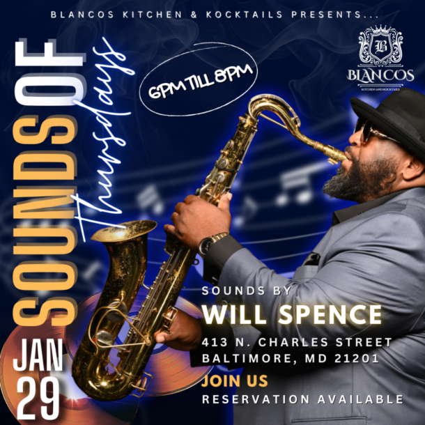 By popular demand, Will Spence is back at Blancos Kitchen & Kocktails for another night of live saxophone performances as part of our Sounds of Thursdays series.