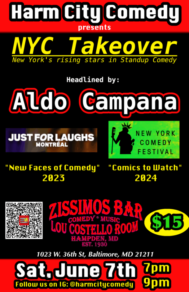 Baltimore! Harm City Comedy is back at Zissimos on Saturday, June 7th for another unforgettable night of laughs! This show features a stacked lineup of up-and-coming NYC comedians who regularly perform at top clubs like The Stand (named best comedy venue by New York Magezine) plus a rising star headliner you won’t want to miss.