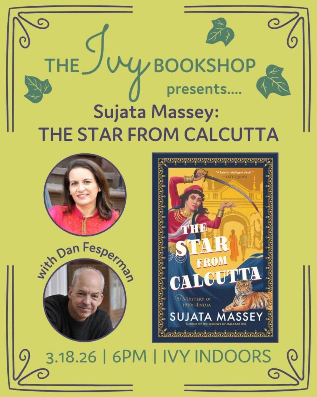 Sujata Massey launches THE STAR OF CALCUTTA, the latest novel in the Perveen Mistry Series, in conversation with Dan Fesperman!