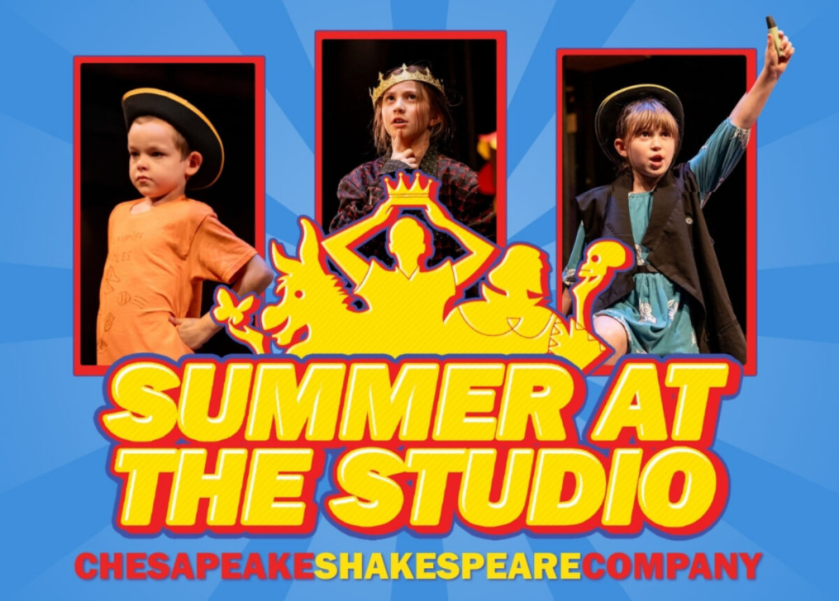 This summer the PLAY’s the thing with summer camps at The Studio! Your child’s imagination will take the spotlight at Chesapeake Shakespeare Company. Each week, kids will explore Shakespeare’s language, create characters, jump into stage combat and clowning and learn confidence and creativity before creating a final staged presentation. Register by MARCH 27 and SAVE 20% on tuition.