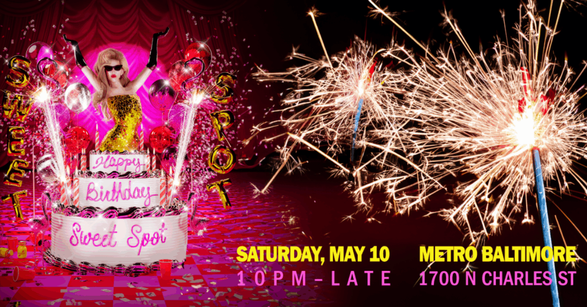 OMG! Sweet Spot is Turning FOUR! It’s been 4 incredible years of dancing, drag, live shows and lots of special moments with our queer fam in Baltimore!! We can’t wait to celebrate with you and dance the night away on Saturday, May 10 along with our host, BABY! So get your tickets, bring your hottest looks and we’ll see you on the dancefloor!!