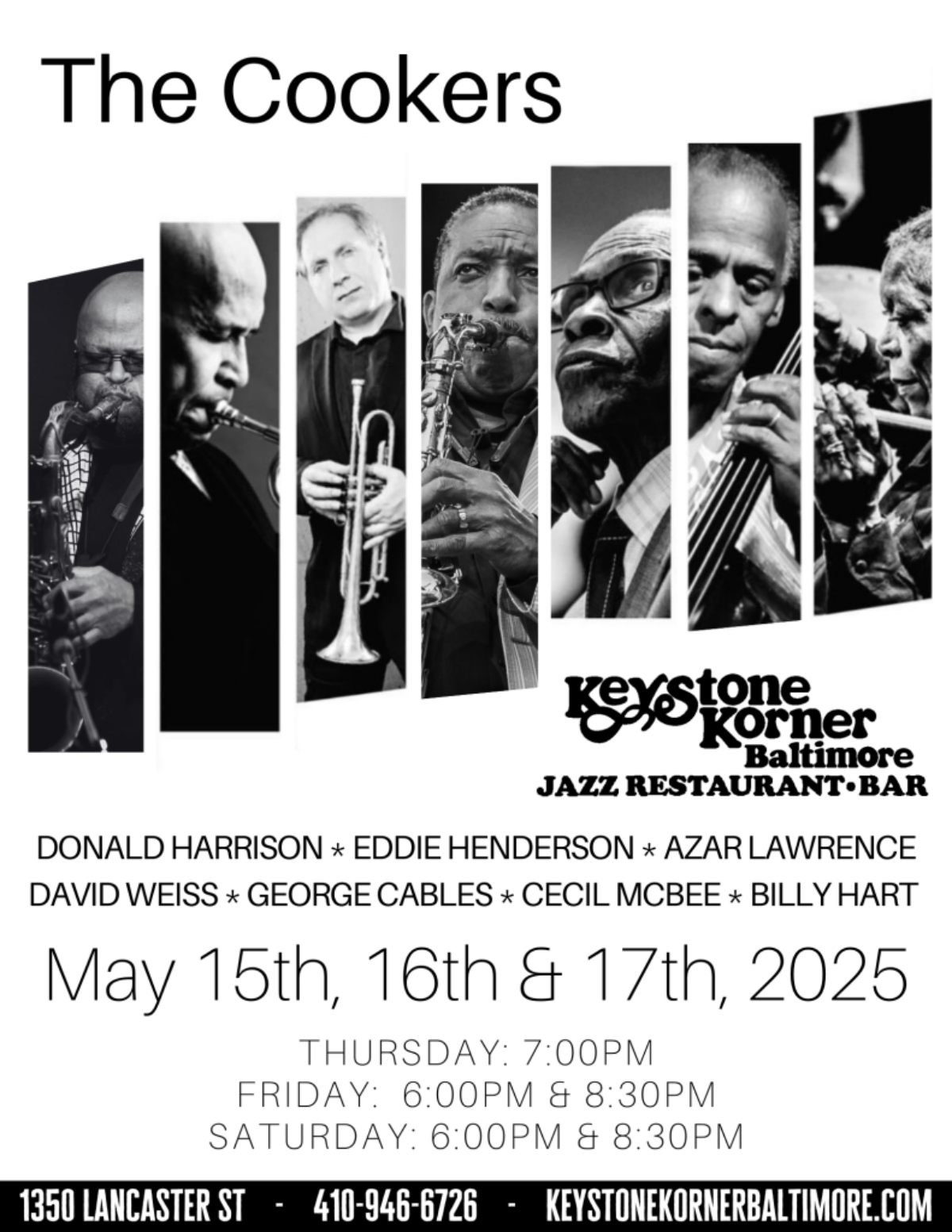 Experience counts, especially in jazz. The more time musicians spend interpreting tunes and interacting with others, the more articulation an audience can expect. You can hear the fruits of such work in the expressive language The Cookers bring to the bandstand and to their six critically acclaimed recordings, Warriors, Cast the First Stone, Believe, Time and Time Again (which was the iTunes Jazz CD of the year in 2014), The Call of the Wild and Peaceful Heart and Look Out!. This exciting all-star septet summons up an aggressive mid 60s spirit with a potent collection of expansive post-bop originals marked by all the requisite killer instincts and pyrotechnic playing expected of some of the heaviest hitters on the scene today.
