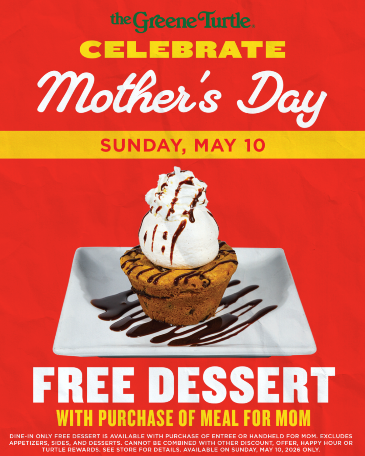 Join us on Sunday, May 10 as we honor all the amazing moms with a sweet treat! With the purchase of any entrée or handheld, mom will receive a FREE dessert on us. 🍰