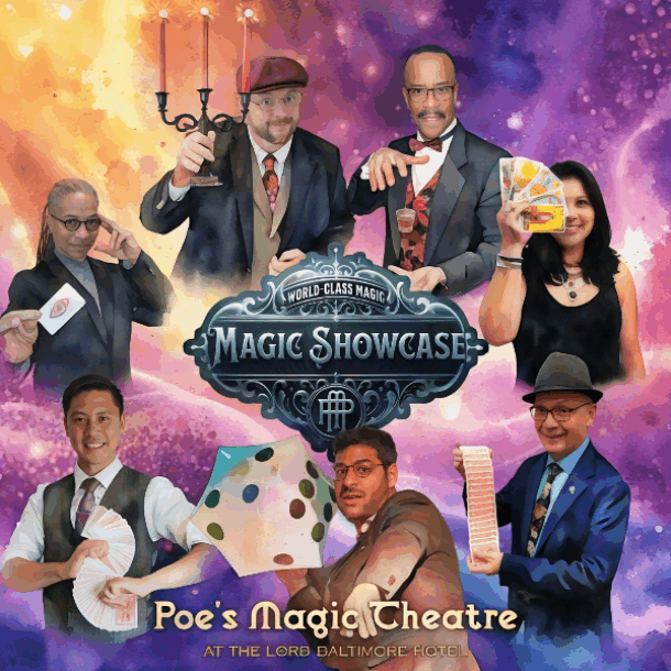 Prepare to be dazzled by an extraordinary gathering of mystical masters! Brace yourself for an enchanting spectacle featuring the best magicians in Baltimore and beyond! These awe-inspiring conjurers have converged in a single mystical realm for a night of pure magic! Brace yourself for the grandest extravaganza of the ages, happening exclusively at the world-famous Poe’s Magic Theatre! As whispers of excitement fill the air, who knows which other illustrious luminaries may grace this extraordinary event? Let your imagination run wild as the night unfolds, and prepare to be captivated by an enchantment like never before!