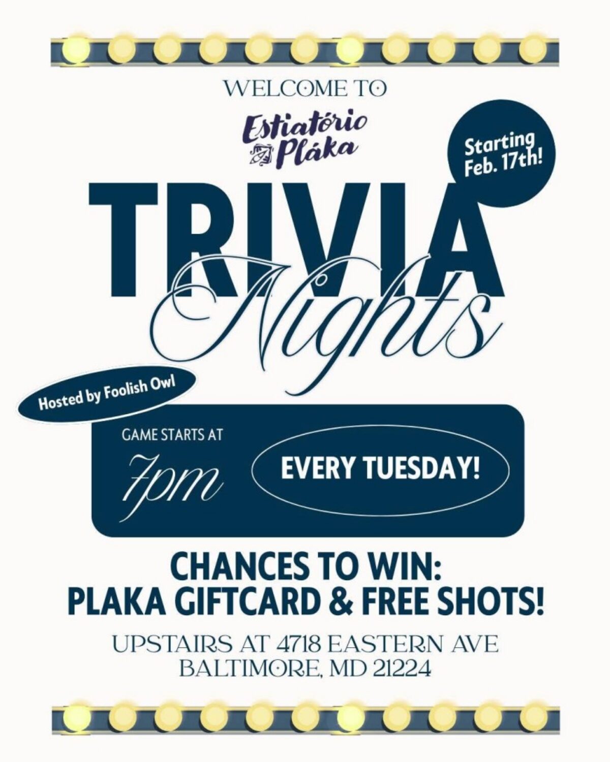 Please join us for our new weekly tradition: Trivia Tuesdays at Plaka!