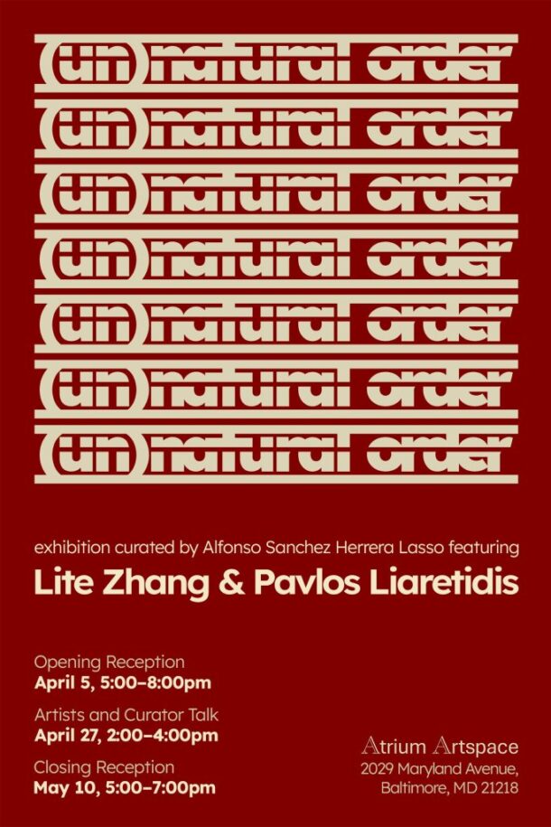 Currently on view at Atrium Artspace: (un)natural order; a two-person exhibition of sculptures and multimedia artworks by Lite Zhang and Pavlos Liaretidis, curated by Alfonso Sanchez Herrera Lasso. This exhibition explores themes of decay, human impact on the natural order and our relationship to the environment.