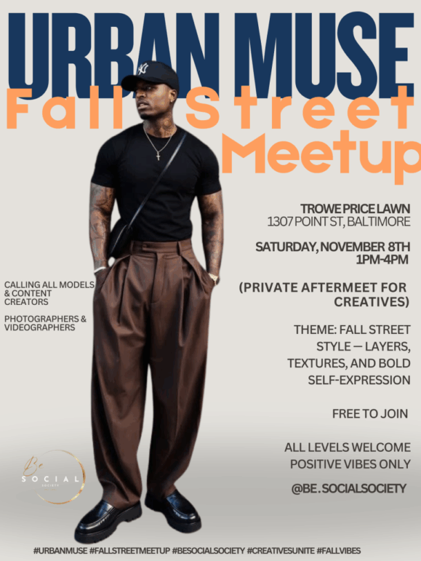 #UrbanMuse #FallStreetMeetup #CreativeVibesOnly #BeSocialSociety #DMVCreatives #StreetStyleMeetup #BaltimoreCreatives