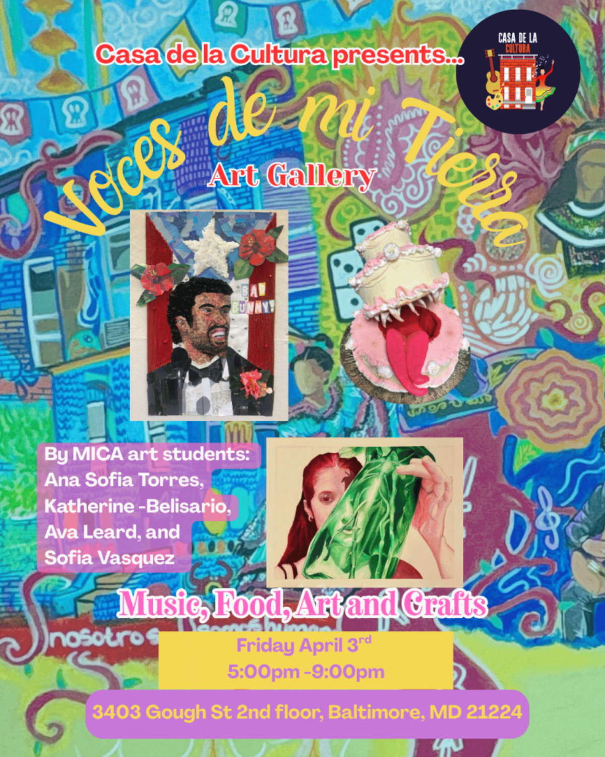 Let’s continue uplifting immigrant and Latina artists in Baltimore. Bring a friend and join us for an unforgettable evening of art and community!